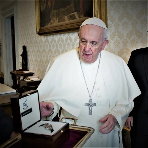 What symbology to draw inspiration from, in order to represent the importance of an array of values to be passed on expressed with simplicity and clarity without excessive frills? The inspiration comes from one of the most charismatic figures of our time, a man of our time, the highest representative of all those values that have been handed down for millennia: The Holy Father, Pope Francis. Hence the spark, which occurred almost by chance, to create "a watch inspired by the Pope."