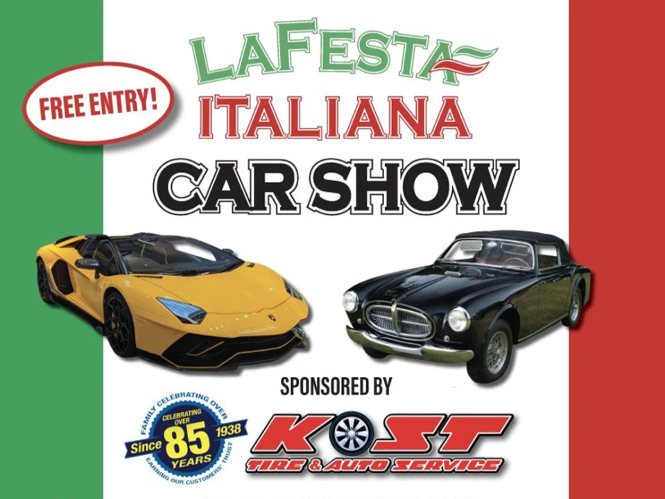 This annual event, sponsored by Kost Tire & Auto Service, offers automotive enthusiasts the chance to admire stunning vehicles while enjoying La Festa Italiana’s festive atmosphere. Awards will be given for 1st, 2nd, and 3rd place, making it a friendly yet exciting competition for participants.