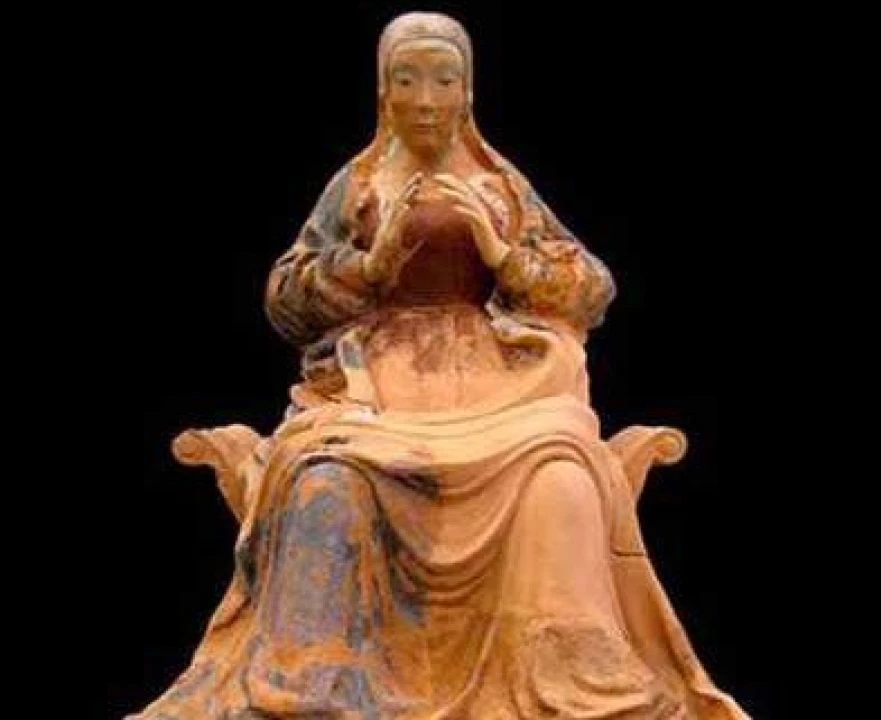 L'opera è una terracotta abruzzese del XVI secolo, riferibile all'ambito di Saturnino Gatti, simile nella postura a molte altre raffigurazioni della Madonna in trono eseguite in terracotta, in legno, in pietra oppure dipinte da artisti del centro Italia nel 1400-1500. In Abruzzo se ne contano più di sei e solo alcune hanno ancora il Bambino sdraiato sul grembo.