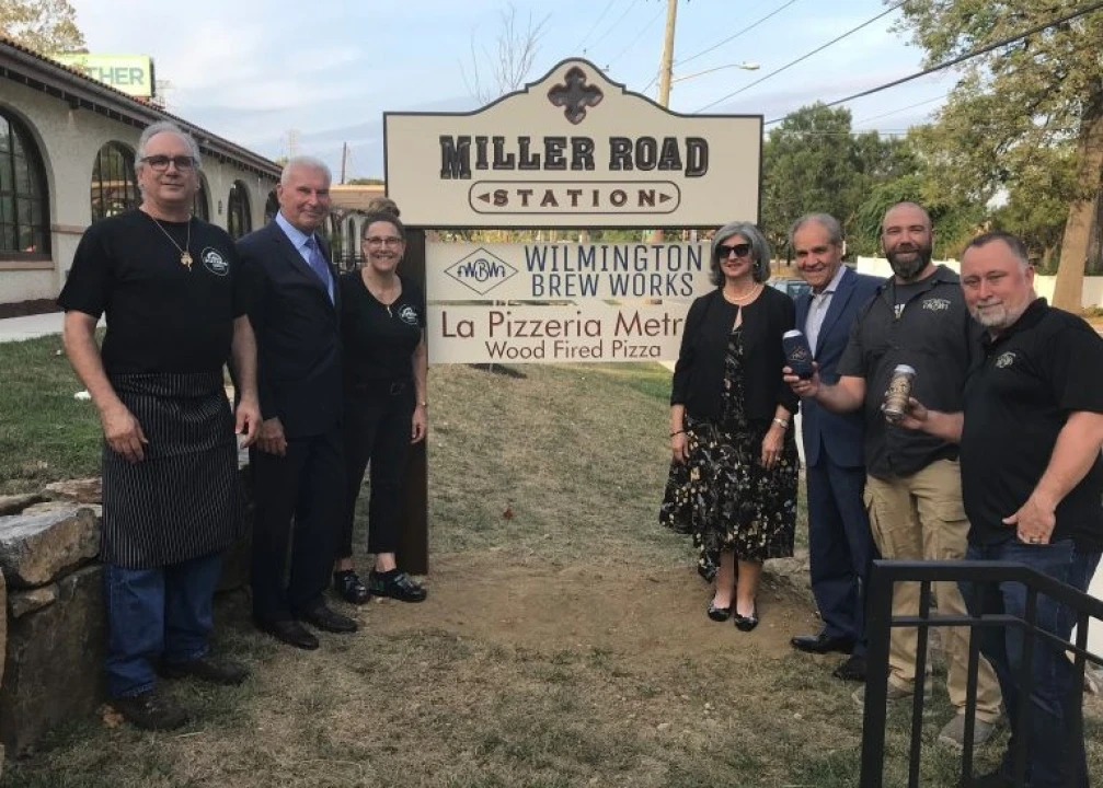 Mayor Mike Purzycki joined property owners Ralph and Rose Pepe for the ribbon-cutting ceremony and official opening of La Pizzeria Metro in Wilmington. The restaurant was built within Miller Road Station, a 11,000-square-foot Spanish colonial-style building that was originally constructed in 1916, located at 3101 Miller Road. Wilmington Brew Works CEO Craig Wensell will also have a presence at the site.