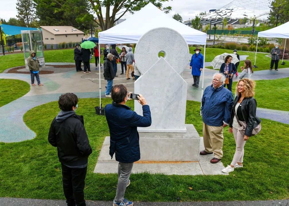 A new 1,300-pound marble monument showcasing the artistic traditions of Cagli, Italy, and bonding the small town with Spokane is on permanent display at the Connections Garden at Riverfront Park. Cagli is Spokane’s newest Sister City, a relationship established in 2016. Spokane’s other Sister Cities are Nishinomiya, Japan; Jilin City, China; Limerick, Ireland; and Jecheon, Korea.