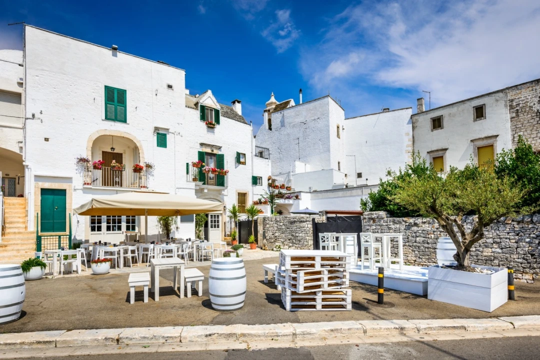 The name “Locorotondo” comes from the Latin locus rotundus and reflects the town’s unique circular layout. Its earliest documented mention dates back to 1195 in an imperial diploma by Henry VI of Swabia, that acknowledged the existence of a “Locus qui dicitur rotondus” and a church dedicated to Saint George. Over centuries, Locorotondo has seen various rulers, from the Knights Hospitaller in 1314 to noble families like the Del Balzo Orsinis and the Carafas, shaping its historical and cultural landscape.