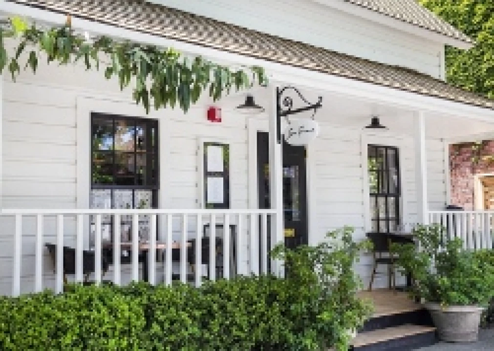 Above, you can see what co-owners Tim Baker (formerly director of operations for Wild Ginger), Wade Weigel and Jeff Ofelt (Bimbo's, Cha Cha, King's, Ace Hotel, Rudy's, Percy's), and Scott Shapiro (Melrose Market) have done with the 50-seat place, which abuts the busy Sunday farmers' market. Instead of sage green, the exterior is now bright white accented with black; the interior is similarly patterned. The inviting patio alone ought to draw many a summer diner.