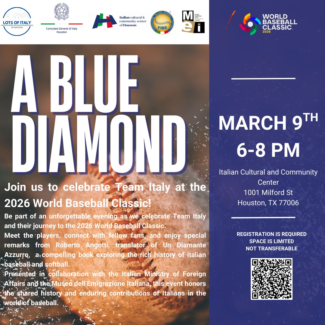 Il Texas in particolare è fondamentale per molti settori delle relazioni tra Italia e USA. E’ qui, a Galveston, che è nato l’attuale Ambasciatore americano a Roma, l’italoamericano Tilman Fertitta, proprietario della squadra di Basketball degli Houston Rockets. E proprio Houston è al centro di diverse novità nel 2026: dallo straordinario successo dell’Italia del Baseball, che qui ha battuto gli Stati Uniti nel World Baseball Classic, all’avvio del volo diretto tra Roma e Houston operato da ITA Airways. Ma l’evento più importante è certamente Lots of Italy in Houston.