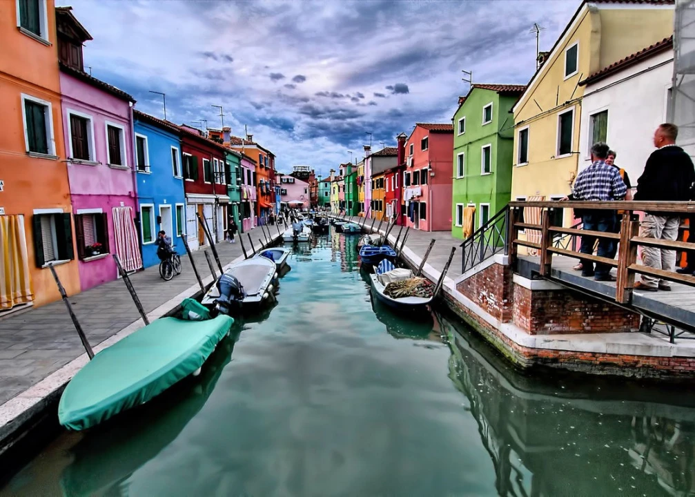 The fisherman’s island of Burano sits in the Venetian lagoon and, like most of Venice, is run through by a system of canals. While Venice can take on a melancholy feel, Burano’s cheery and brightly painted houses stand out.