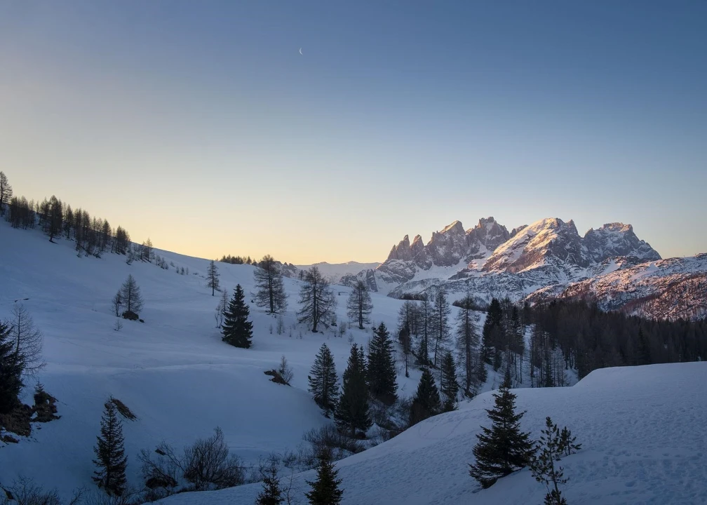 Pink clouds like candyfloss float above as we bump along in our snowmobile past quaint wooden chalets with smoke billowing from their chimneys. It’s that bewitching time of day in the Dolomites. They call it enrosadira (or alpenglow) and it’s when the mountains glow pinky red.