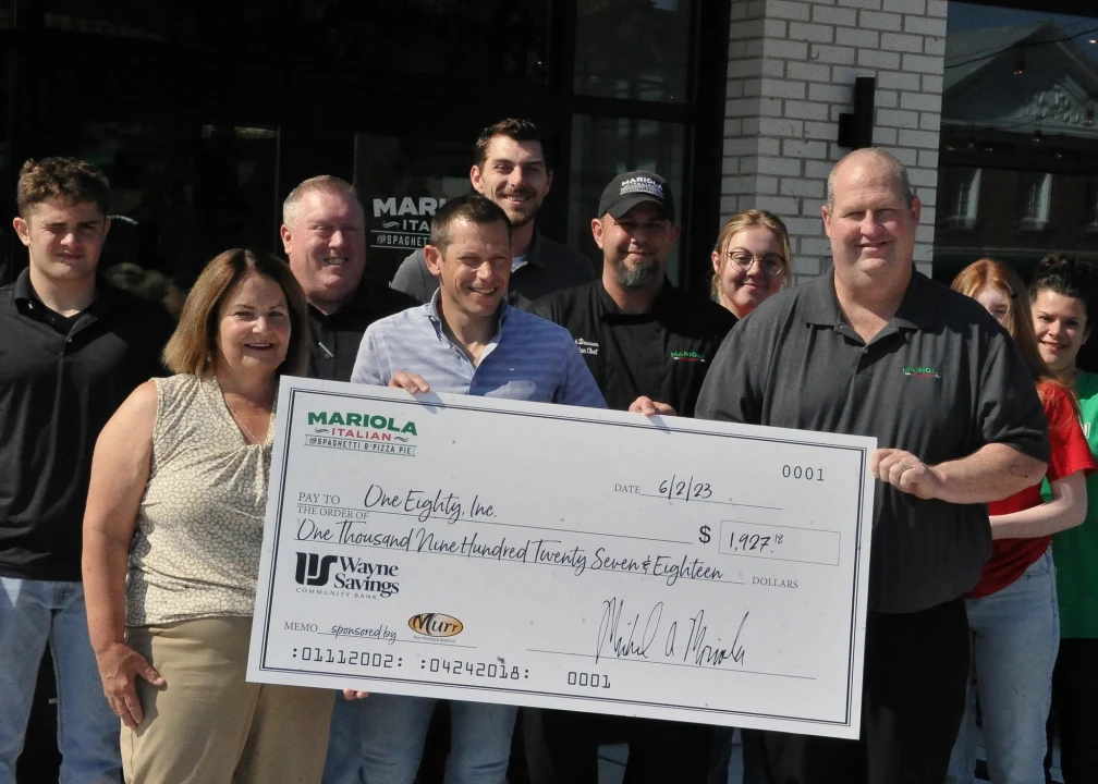 After a booming first week in business, Mariola Italian celebrated its grand opening with a donation to a local nonprofit. Wooster's newest eatery raised and donated $1,927 to OneEighty, which will use the funds to support existing programs that benefit the community. For Mike Mariola, owner of the restaurant that bears his name, the donation reinforces his goal of being a community-oriented restauranteur.
