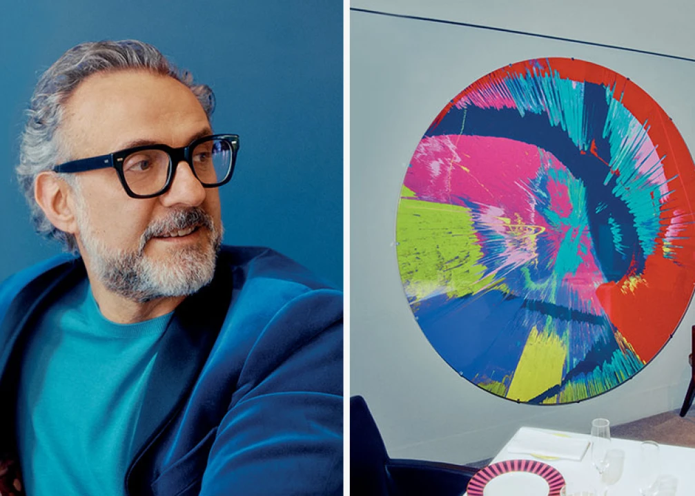 We have just arrived at his home, a few kilometres from Modena’s medieval city centre. The motor of his white Maserati is still warm in the driveway. Around me, art is everywhere. Works by Ai Weiwei, Joseph Beuys, Cindy Sherman and Michelangelo Pistoletto are dotted all over the ground floor.