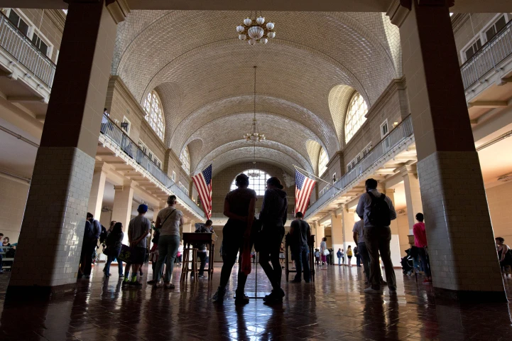 In realtà, la Statua della Libertà non fu costruita per accogliere gli immigrati: aveva, certo, un significato di benvenuto, ma più come un simbolo dell'America. Siccome però fu costruita nel 1886, e nel 1892 il governo federale decise di utilizzare Ellis Island come stazione per gli immigrati, nell'immaginario collettivo americano le due cose sono diventate collegate tra di loro come se così fossero nate. In origine non lo erano, ma certamente lo sono ora. E dobbiamo ricordare che non tutti gli immigrati che hanno avuto l'emozione di vedere la Statua della Libertà e sono poi passati per Ellis Island, poi sono rimasti a New York. In realtà, solo il 40% lo ha fatto: il 60% si è poi trasferito altrove.