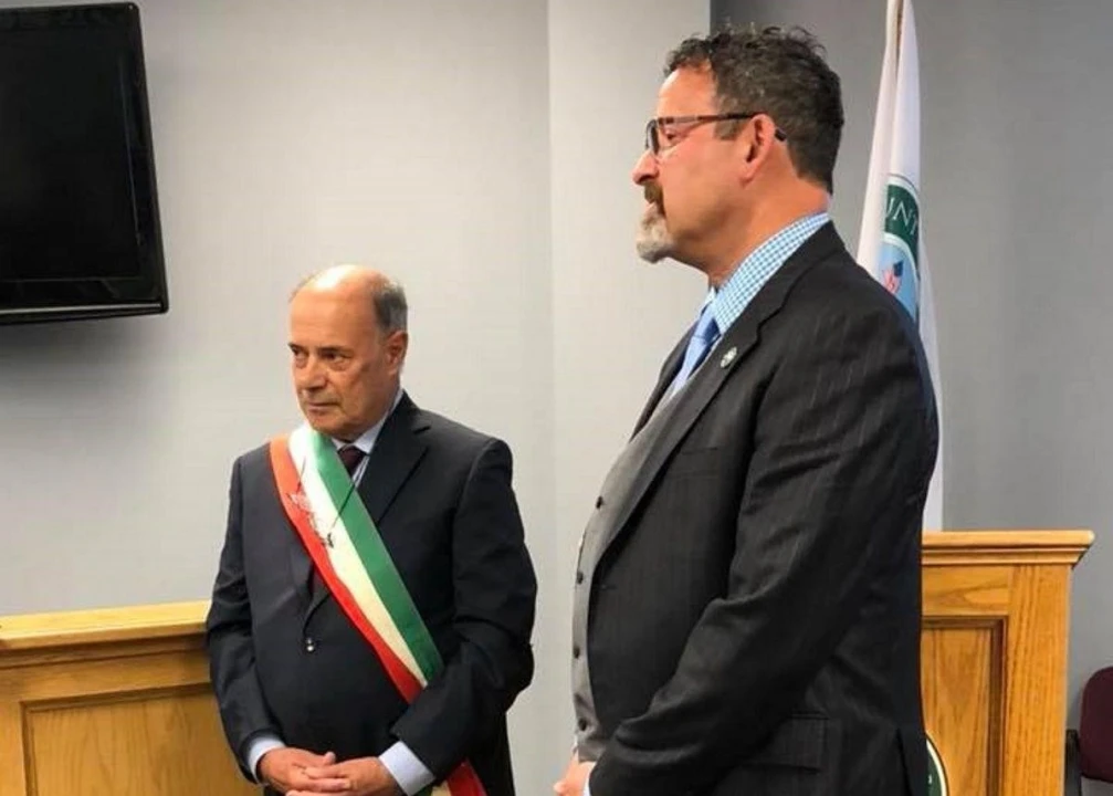 The township has a new sister and she is 1,552 years old. The sister is the town of Carpegna, Italy, and Mayor Angelo Francioni met with his American counterpart, Mayor Rob Greenbaum, in ceremonies on Wednesday, June 27, celebrating the two sister cities.