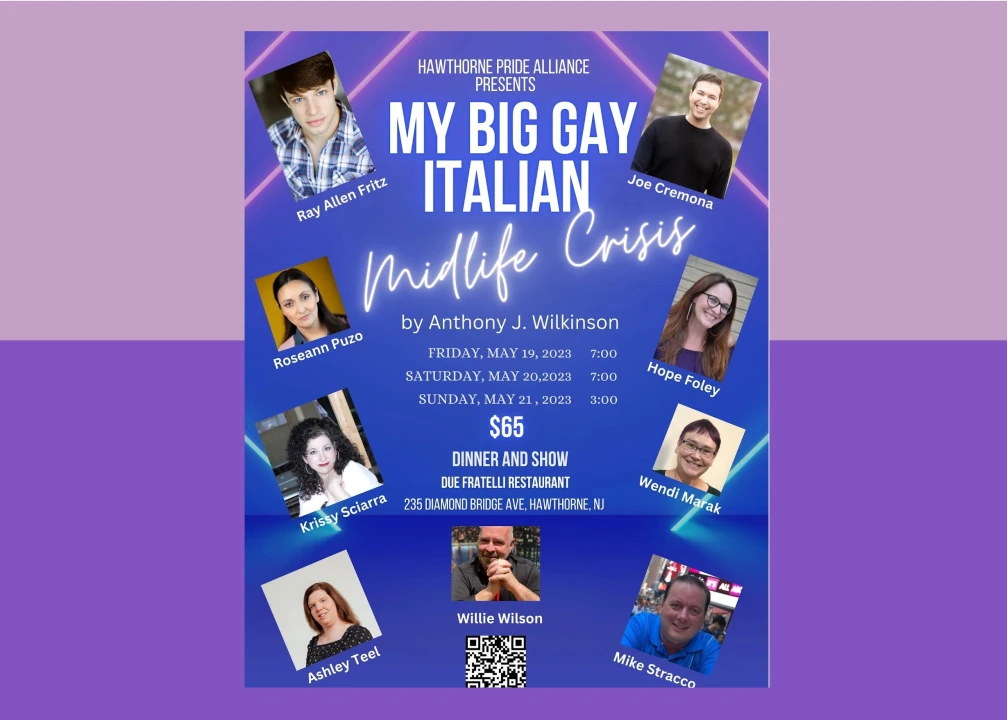 This year’s production, My Big Gay Italian Mid Life Crisis by Anthony J. Wilkinson will be presented to the community on May 19th, May 20th, and May 21st at Due Fratelli Restaurant on Diamond Bridge Ave. Anthony J. Wilkinson, who is the writer and creator of the My Big Gay Italian franchise, has been working closely with the cast as its consultant. Wilkinson was one of the Champions of Equality recognized by the HPA last year.