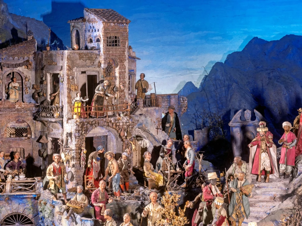 Photographs in the shops and studios of Via San Gregorio Armeno in Naples, at the Metropolitan Museum of Art, and in churches and homes throughout the metropolitan area provide a variety of expression that keeps the Presepio (the Nativity scene set in flamboyant Naples) a vibrant symbol of Christmas.