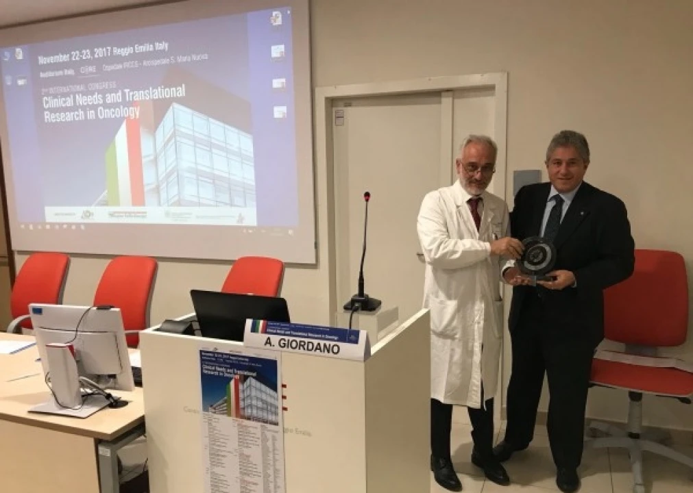 The CORE Prize for Oncology 2017 was awarded to two prestigious researchers, Professor Luca Gianni, Director of the Department of Oncology of the IRCCS Hospital, S. Raffaele of Milan, and Professor Antonio Giordano, Director of the Sbarro Institute for Cancer Research and Molecular Medicine, Temple University of Philadelphia (USA), and Professor of Anatomy and Pathology of the University of Siena.