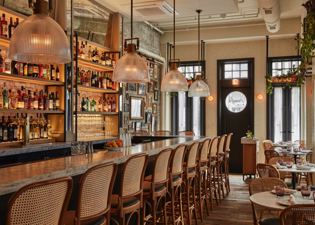 Guests can enjoy a drink at the stylish lounge or relax with a cocktail on the spacious terrace. The menu, designed by Culinary Director Ed Pinello, features seasonal ingredients and thoughtful cocktails. In addition, a full bar is available.