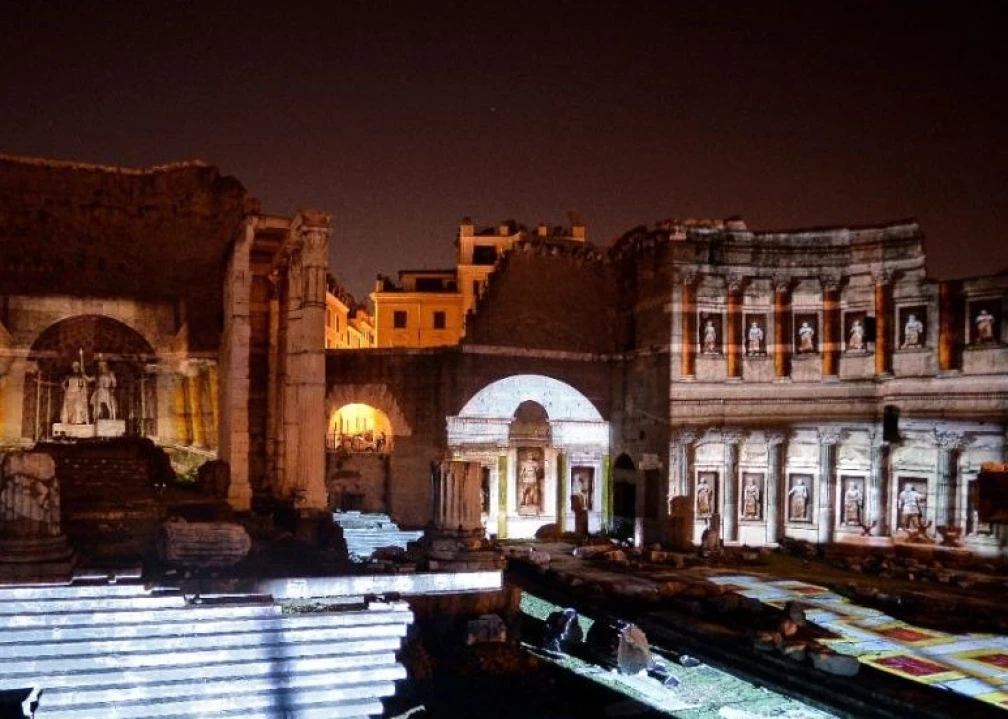 The centre of ancient Rome and long a highlight of visits to the city, the site until mid-November hosts an exceptionally sophisticated sound and light show that each night fleetingly recreates the staggering temples and palaces suggested by the marooned boulders and clusters of columns scattered across the complex, and in so doing brings to life the remarkable events that occurred in its ancient plazas, marketplaces and courts.