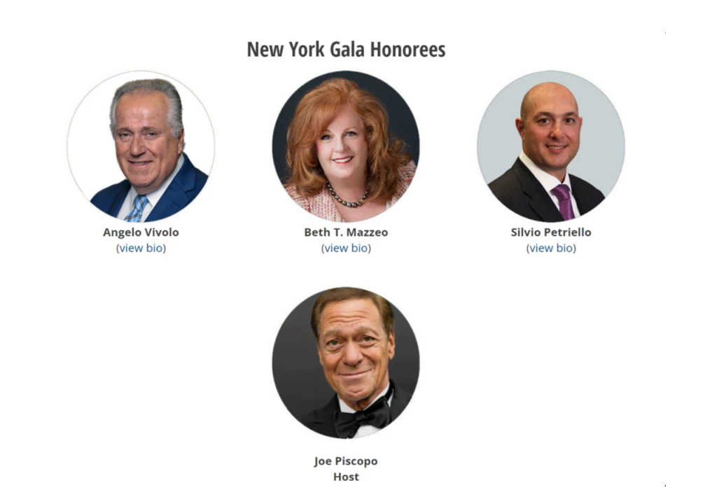 This year, NIAF will honor Angelo Vivolo, President of the Columbus Heritage Coalition; Beth T. Mazzeo, special advisor and the former Chief Administrative Officer of Bloomberg LP and in January was named Chair of the Villanova University Board of Trustees; and Silvio Petriello, Vice Chairman at CBRE. All three honorees have demonstrated extraordinary leadership in their respective industries. For more honoree information, visit: www.niaf.org/nyc.