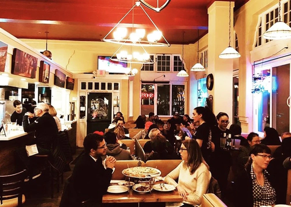 North Beach Pizza San Mateo at downtown’s busy intersection of B Street and Third Avenue arguably serves some of the best pizza and traditional Italian fare on the Peninsula. Also conveniently located a block from the Cinemark Theatre. A charming family trattoria with an inviting ambiance, friendly service and aromatic fresh sauces greeting guests even before they step over its threshold, this is an authentic find. But not to longtime regulars.
