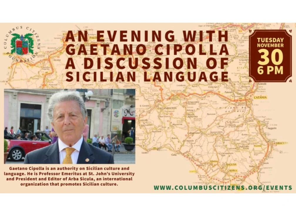 Join us on November 30 at 6pm for an enlightening evening with Gaetano Cipolla, an authority on Sicilian culture and language. RSVP Here. He is Professor Emeritus at St. John’s University and President and Editor of Arba Sicula, an international organization that promotes Sicilian culture.