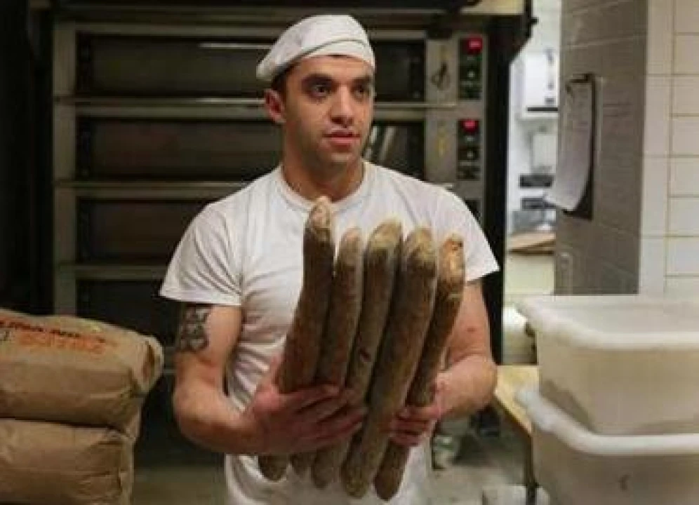 Breads include ciabatta, a French sourdough miche, which is a puffy round, a baguette stuffed with Parmigiano and prosciutto, and the best-selling olive baguette. All have a crisp crust with a little char and lots of holes in the crumb, like you'd find in an Old World bakery. That was what DePasquale had in mind: to bring back the bread he enjoys on frequent trips to Italy.