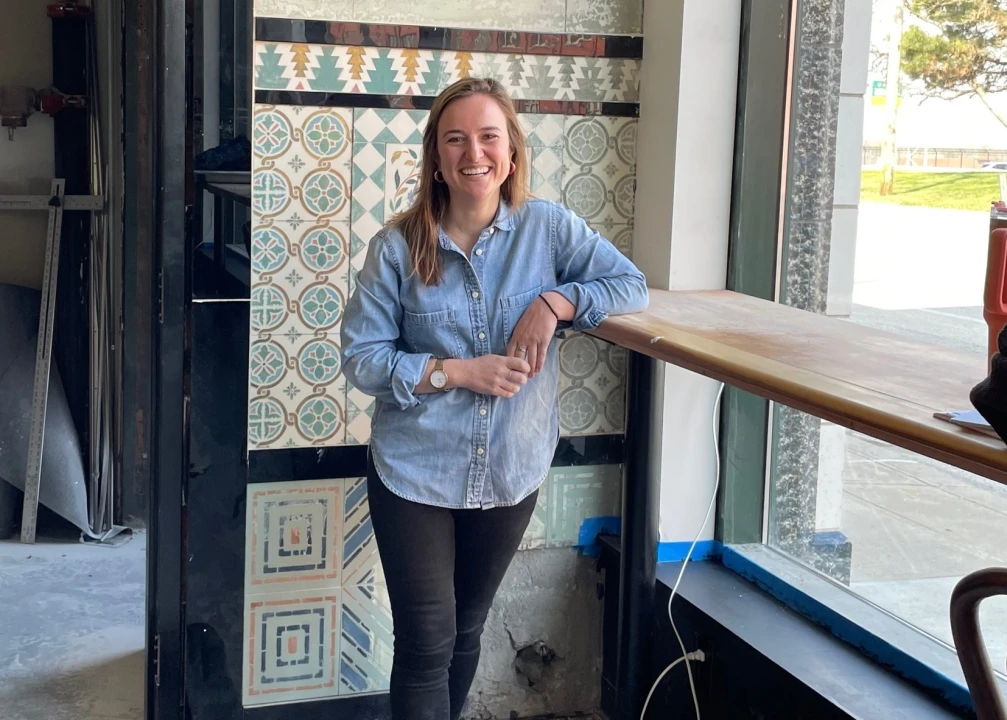 Occupying the former showroom storefront at ground level will be Patron Saint, which owner Marie Artale describes as an “Italian-inspired all-day café and aperitivo bar.” The 1,600-square-foot space features beamed 15-foot ceilings, 100-year-old tile flooring, graceful arches, and walls clad in various shades and designs of Vitrolite glass.