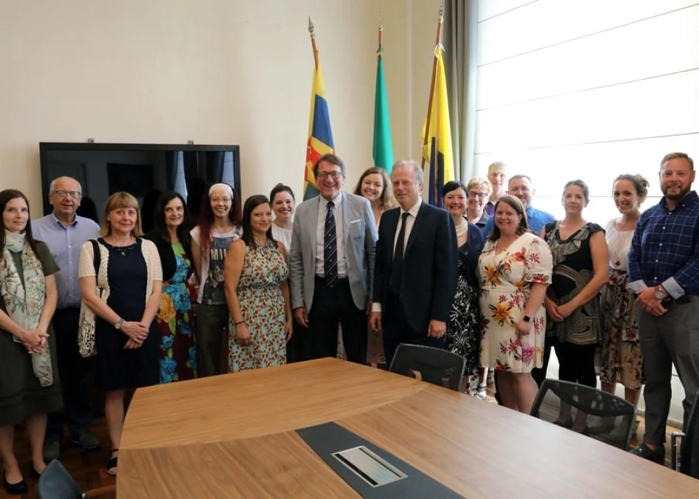 Il sindaco Gian Carlo Muzzarelli e l’assessora alle Relazioni internazionali Debora Ferrari hanno incontrato, lunedì 1 luglio, in Municipio la delegazione di studenti e insegnanti, guidata dal professor Eric Dregni della Concordia University, giunta a Modena in rappresentanza della città statunitense di Saint Paul, capitale dello Stato del Minnesota.