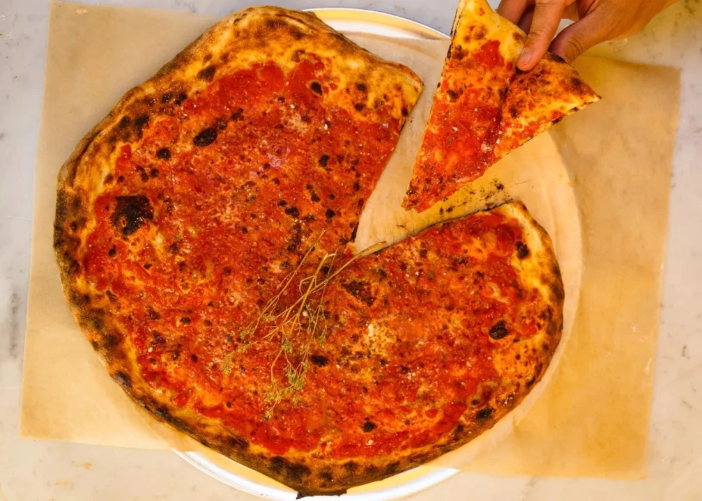Brooklyn’s newest slice shop comes from neighborhood restaurateurs Frank Castronovo and Frank Falcinelli, who have now added pizza to their mini dining empire on Court Street in Carroll Gardens. It’s the duo’s first foray into pizza making, and they’ve tapped two of the biggest names in the pizza and bread worlds to help them with the task: Chad Robertson of San Francisco bakery Tartine and Chris Bianco of Phoenix’s Pizza Bianco.