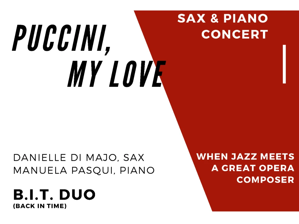 May 29 2024, 18:00 to 20:00. NYU Brademas Center - Abramson Family Auditorium 1307 L Street NW Washington, DC. The Italian Cultural Institute of Washington, in collaboration with New York University Washington DC, presents “Puccini, My Love”, a jazz concert improvisation by B.I.T. DUO – (Back In Time) on Giacomo Puccini’s music.