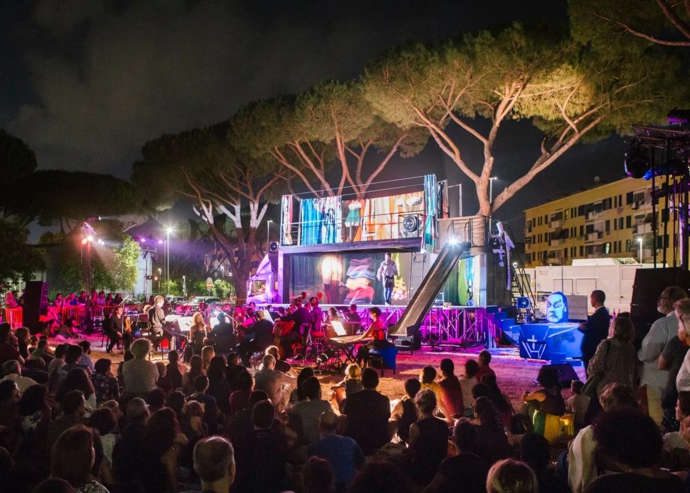 On a steamy evening in late June, Lisa Scen, a retired cook of inscrutable age, donned a simple beige dress and glittery earrings and prepared to go to her first night at the opera. Actually, the opera came to her. The OperaCamion, a mobile stage, with its cast and crew, set up in a shabby square of scorched, uncut grass in the outlying San Basilio quarter of Rome, where Ms. Scen has lived for the past 30 years. It was a free, one-night performance of Mozart’s “Don Giovanni.”
