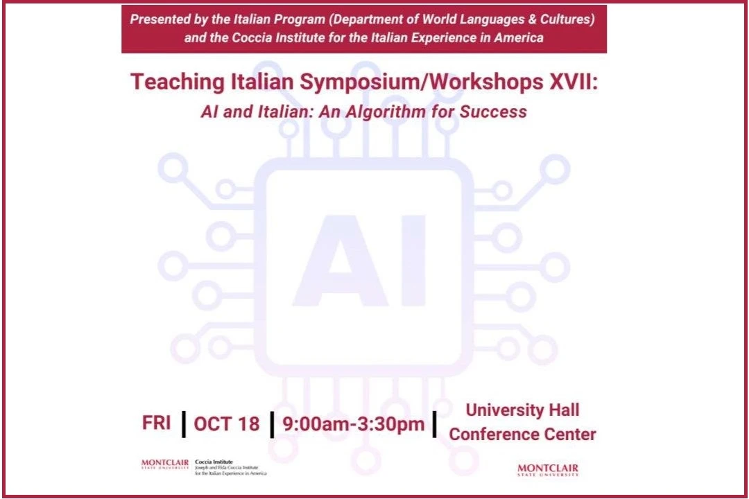 REGISTRATION IS NOW OPEN for “Teaching Italian Symposium/Workshops XVII: AI and Italian: An Algorithm for Success”– the 17th annual professional development program organized by the Coccia Institute for the Italian Experience in America and Prof.ssa Enza Antenos, Dept. of World Languages & Cultures, at Montclair State University.