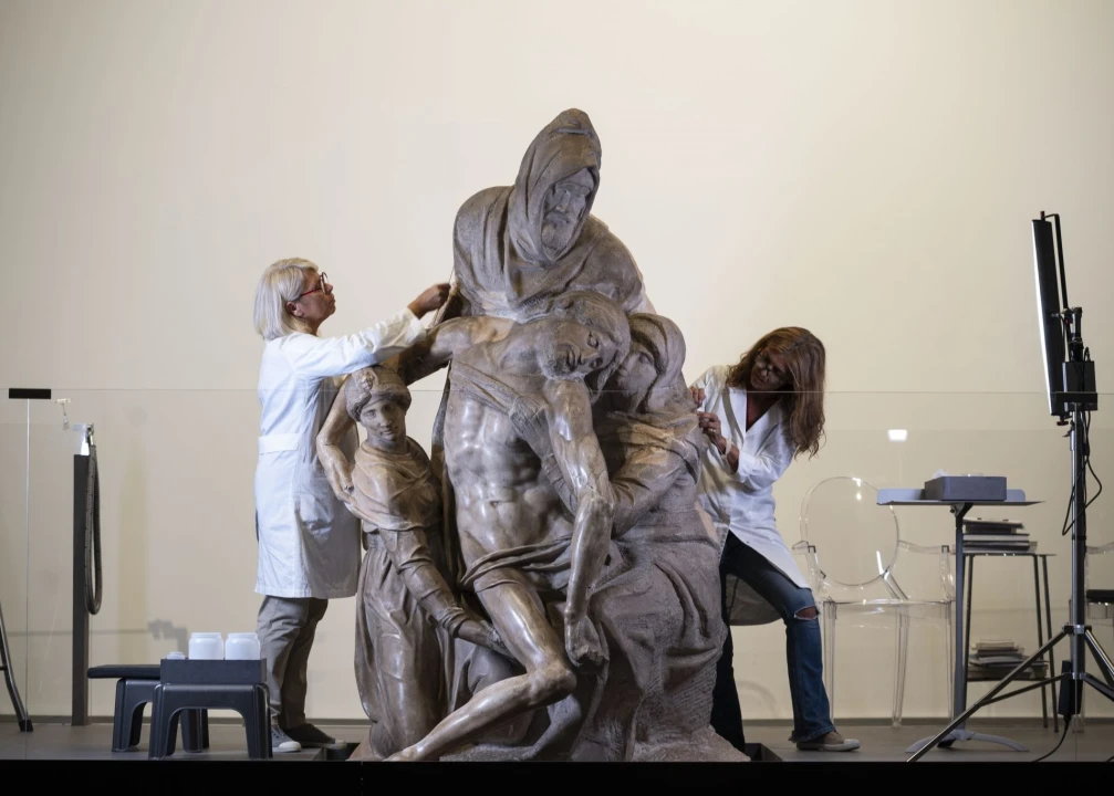 But then, unsatisfied, he abandons the Pietà, still unfinished, and gives it to his servant Antonio da Casteldurante. He has it restored by Tiberio Calcagni, Florentine sculptor student of the master and sells it for 200 scudi to the banker Francesco Bandini, who will place it in the garden of his residence, the villa di Montecavallo in Rome. After several ownership changes, it was purchased in 1671 by Cosimo III de’ Medici.