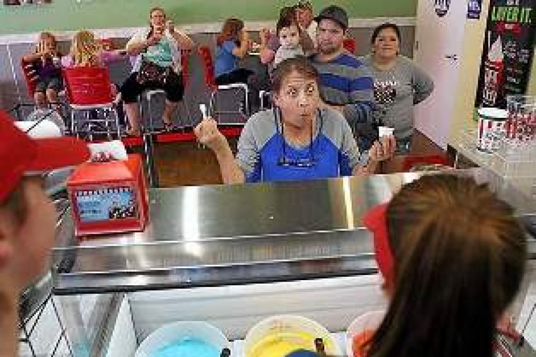 Local patrons at Rita's Italian Ice gave the treat good reviews Tuesday. "Fantastic," said Jamie Garrison, a mom who came for a free sample. "We will be back." Amy Weiss, 9, said, "I like all the flavors" while Levi Thomsen, 9, opined, "It's better than Slurpees," explaining that's because of "all the texture."