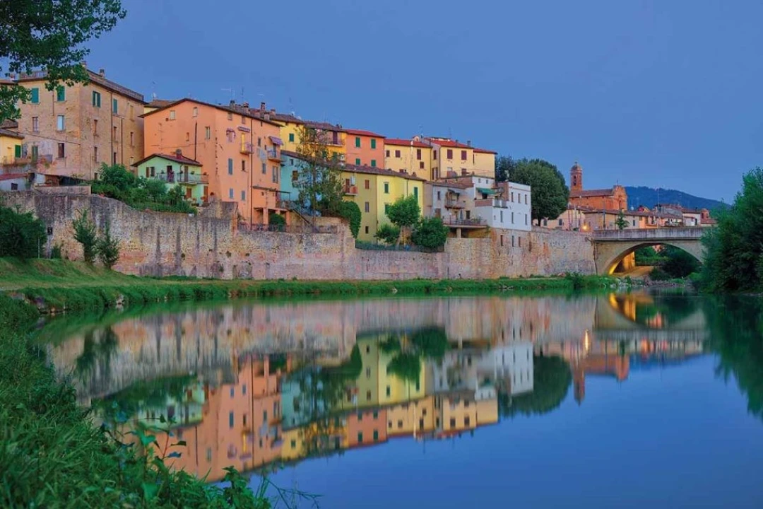 The river flows from two springs separated by 33 feet on Mount Fumaiolo. In the 1930s Benito Mussolini had an antique marble column built at the source, inscribed with the words, Qui Nasce Il Fiume Sacro Ai Destini di Roma. This translates to “Here is born the river, sacred to the destinies of Rome.” Mussolini also changed the regional borders over a century ago to place the source of the river within his birthplace of Dovia di Predappio, a small town in the province of Forlì in Emilia-Romagna.