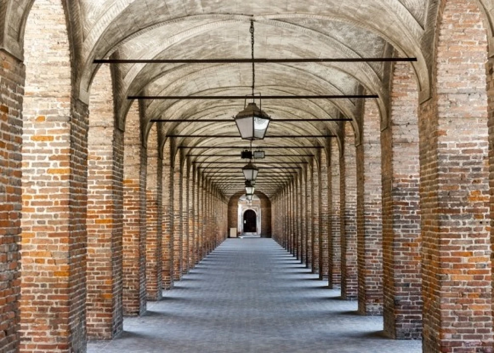 The Unesco-inscribed town of Sabbioneta between Mantua and Parma is considered a true model of an ‘ideal city.’ Over the course of a few decades, what had been a small fortified village was entirely rebuilt by nobleman and condottiero Vespasiano Gonzaga, according to the Renaissance principles of proportion and the ideal of harmony as symbolized in the Vitruvian Man drawing by Leonardo da Vinci.