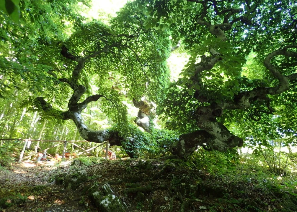 In the woods above the small town of Rivodutri, along the Way of Saint Francis, an extraordinary beech tree is said to have assumed its present shape when it sheltered the saint during a storm. This legend explains why, unlike other beech trees, this particular monumental tree has assumed its present “weeping” shape.