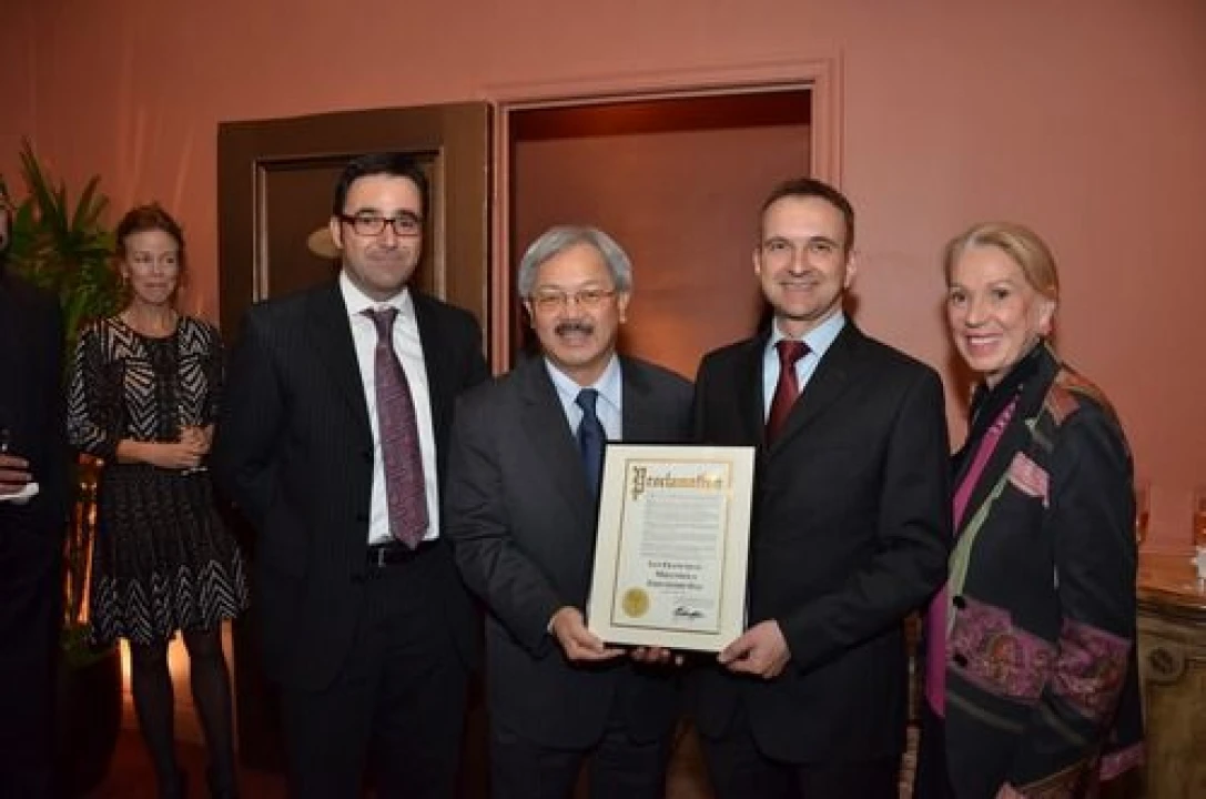 Organizer Richard Armanino of ItalFoods, Inc. brought together the prominenti of the Italian Community of San Francisco for the two-hundred-dollar-a-plate dinner. San Francisco Mayor Edwin Lee, flanked by California Protocol Chief Charlotte Swig, presented a proclamation declaring the day "San Francisco-Mirandola Friendship Day." The proclamation was received by the Consul General of Italy, the Honorable Mauro Battocchi on behalf of the Mayor of Mirandola.