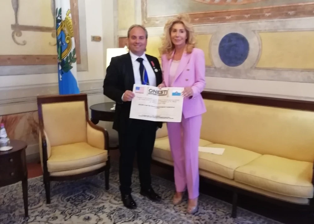 Last May 14, the President of the Joint Civic Committee of Italian Americans, Ron Onesti, arrived in San Marino to express his concrete solidarity in favor of the reception of Ukrainian refugees that San Marino is offering. Dr. Maria Alessandra Albertini met with Onesti to express the deepest gratitude of San Marino's Secretary of State for Foreign Affairs, Luca Beccari, for the highly significant gesture.