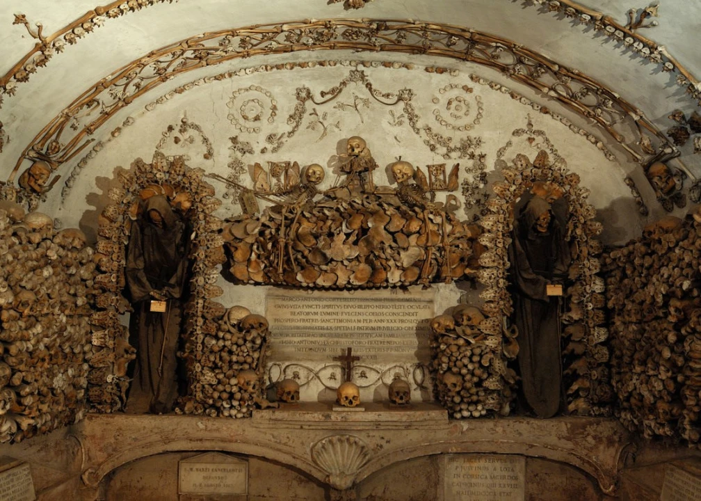 And lie there they do. Some 4,000 Capuchin friars who died between 1528 and 1870 are still lying, hanging, and generally adorning the Santa Maria della Concezione crypt in Rome. In 1631, the Capuchin friars, so-called because of the “capuche” or hood attached to their religious habit, left the friary of St. Bonaventure near the Trevi Fountain and came to live at Santa Maria della Concezione, of which only the church and crypt remain.