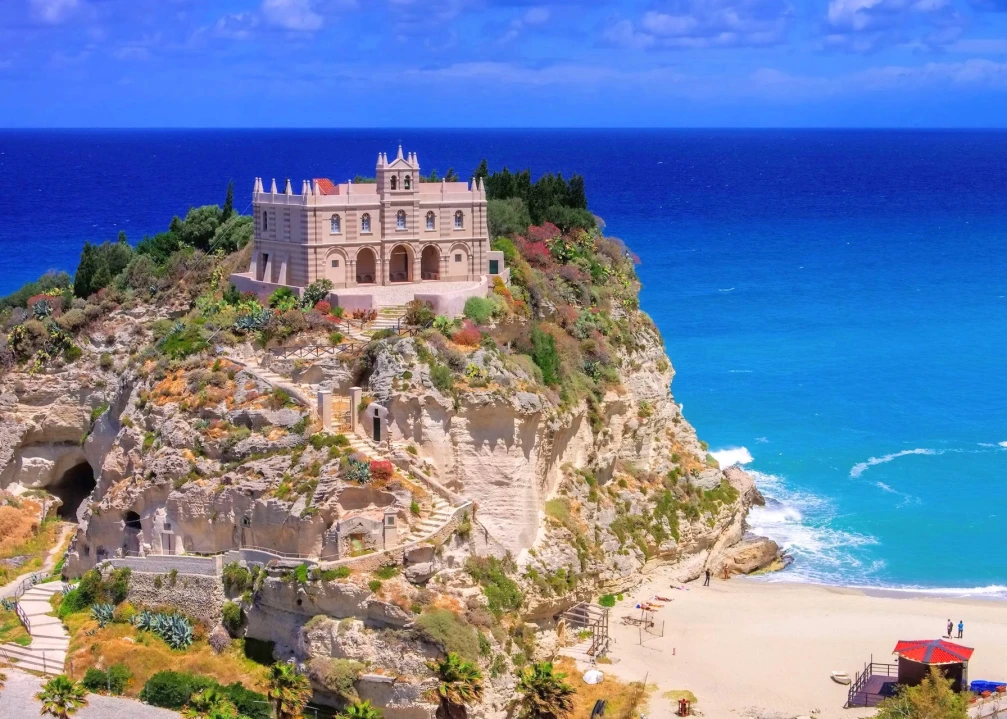 The church of Santa Maria dell’Isola is one of Tropea’s icons: it towers on a promontory facing the Calabria town’s beach, hiding its ancient origin in the new look it acquired when its was extensively renovated after being damaged by a terrible earthquake in 1905. Likely built between the 6th and the 9th century, at first it welcomed a community of Basilian monks. In the 11th century, it was passed on to the Benedictines, who still own it today, under the Abbey of Montecassino.