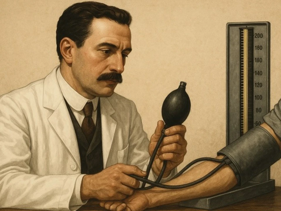 Scipione Riva-Rocci (1863–1937) gave the world the first practical way to measure arterial pressure at the bedside. In 1896, the young Italian physician described a simple device in a Turin medical journal: an inflatable cuff wrapped around the upper arm, a rubber bulb to raise pressure, and a vertical mercury column to show the number.