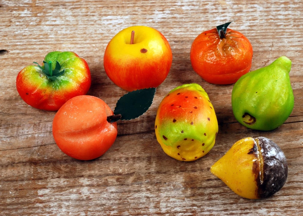 The colorful ‘fruttini di Martorana’ are a typical dessert prepared in Sicily for the solemn feast for the Day of the Dead on November 2nd, to commemorate lost loved ones on the island. The Martorana fruits take their name from the aristocrat Eloisa Martorana, who founded Palermo’s third Benedictine monastery in 1194.