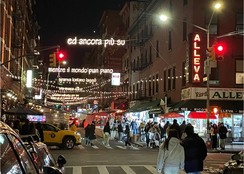 The Little Italy Merchants Association hosted a Street Light and Ribbon Cutting Ceremony entitled, “Sogno Americano” (American Dream): A “Talking” Street Light Installation on the corner of Broome and Mulberry Streets in Little Italy, New York City. Presented to Little Italy from our compatriots in Naples, Italy.