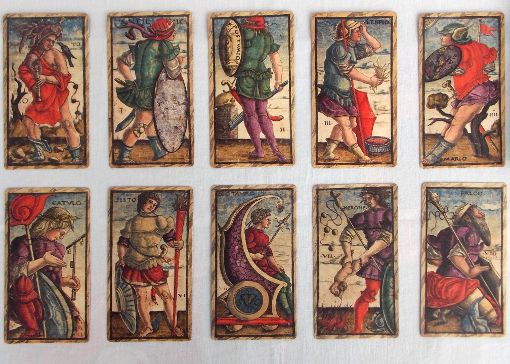 The Sola Busca Tarots are the oldest Italian deck of cards in the world, and were named after their last owners, Marquis Busca and Count Sola. In 1924, the Ministry of Public Education recognized the value of this complete collection and its illustrations, and claimed first option to buy it – which it exercised in 2009, when the deck was put up for sale.