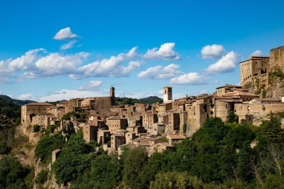 In the province of Grosseto, in the green Maremma, Sorano is a small village built on top of a tuff cliff. This village, along with other picturesque medieval towns built into the tuff, preserves essential evidence of the Etruscan civilisation.