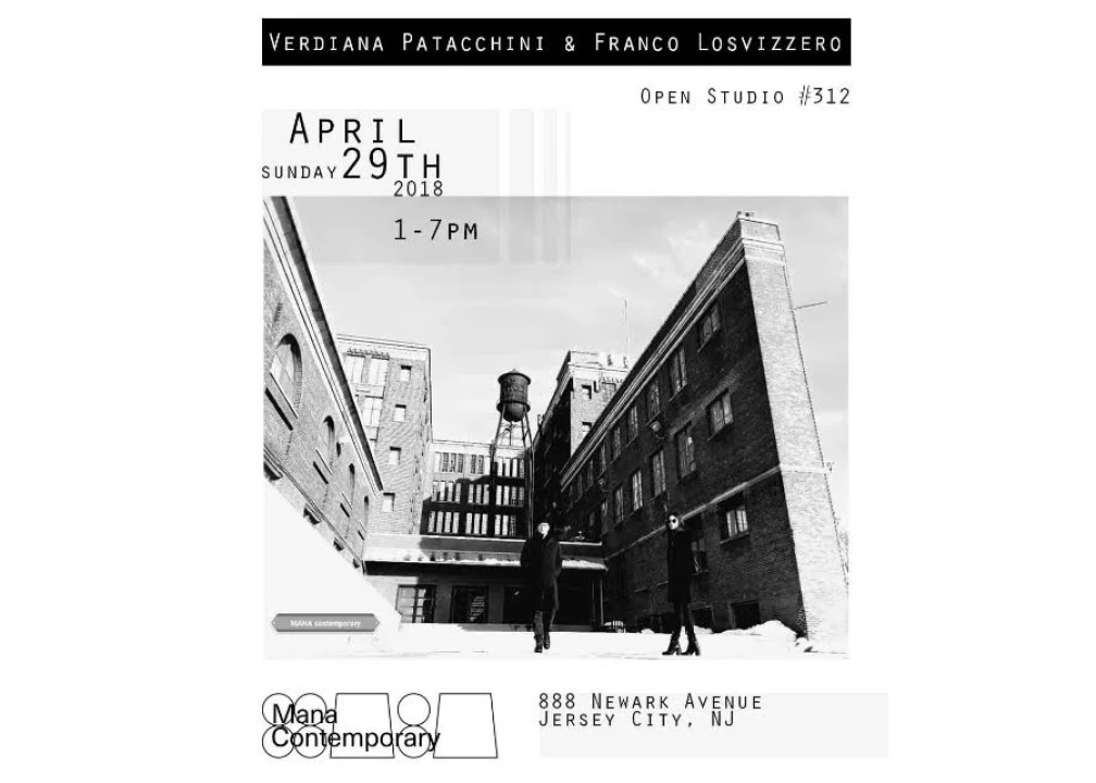 Sunday, April 29, 2018. 1–7PM. Verdiana Patacchini & Franco Losvizzero. Spring Open House 2018 features new exhibitions, programming, performances, and open studios all day. Mana Contemporary - 888 Newark Avenue - Jersey City, NJ. Shuttle service will depart every half hour from Milk Studios (450 West 15th Street, New York, NY 10011) starting at 12:30 and ending 5PM. Returning shuttles from Mana will run every half hour from 2–7:30PM.