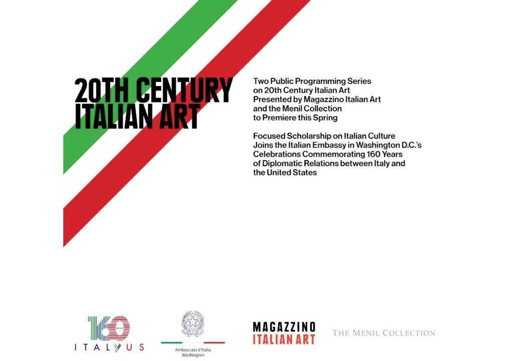 This spring, Magazzino Italian Art and the Menil Collection, two museums based in the U.S., will premiere discrete public programming series examining the contributions of Italian artists in the 20th century. Joining efforts of the Italian Embassy in Washington D.C. to commemorate 160 years of diplomatic relations between Italy and the United States, these scholarly lectures will add to the year-long celebration examining the past, present, and future ties between the two countries.