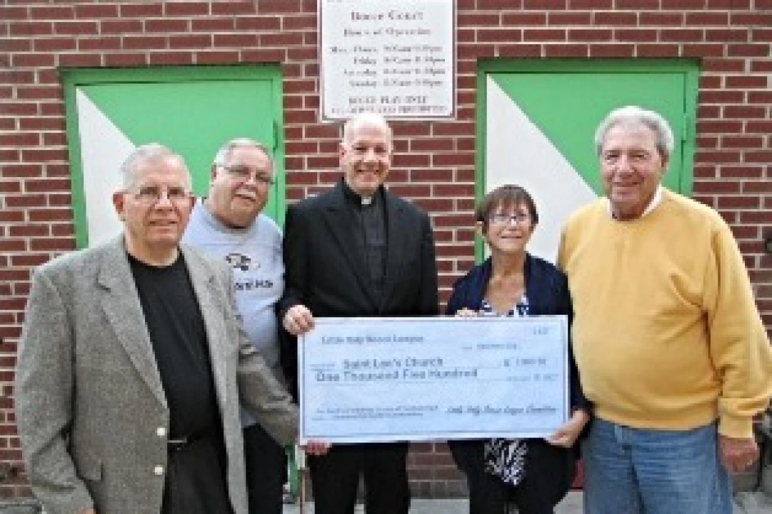 On September 26, the Little Italy Bocce League presented pastor Father Sal Furnari and St. Leo's Church with a $1,500 check, money collected from team entry fees during the Saint Gabriel Festival Bocce Tournament in August. The tournament this year was hosted by the Little Italy Bocce League.