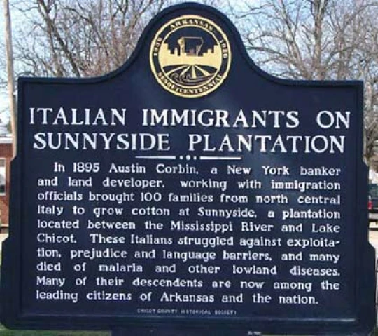 While in the Marche and in the Emilia Romagna extended families lived on small plots of land and so there was an overpopulation there, in the USA slaves had been freed and left the plantations needing of workers. In the Delta there was a lack of workers and that was behind the deal between Emanuele Ruspoli, mayor of Rome in the late 1800s, and Austin Corbin, owner or at least the man in charge of the Sunnyside Plantation consisting of more than 10.000 acres in Arkansas, just across the Mississippi River from Greenville, Mississippi. Ruspoli visited the plantation in 1894 and he and Austin Corbin agreed that Ruspoli would have recruited and sent 100 families a year for 5 years to work in the Sunnyside Plantation.