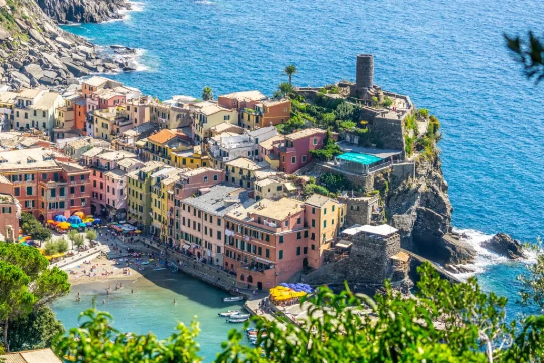 Picture a dream Italian coastal town, and the five towns of Cinque Terre will likely come to mind. Perched on the cliffs overlooking the Mediterranean, the narrow, pastel-coloured houses stand tightly together, surrounded by terraced vineyards, olive groves, lemon orchards, and lush greenery of the land, while the rocky cliffs plummet down to the turquoise sea.