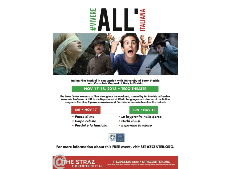 Tampa’s first Italian Film Festival, Vivere All ’Italiana: Italian Film, will be premiering at the Straz Center for the Performing Arts this weekend. The TECO Theater will host three films on Saturday and three on Sunday. It is curated by Dr. Patrizia La Trecchia, an associate professor for the University of South Florida and director of the USF Italian program, in conjunction with the Consulate General of Italy in Florida