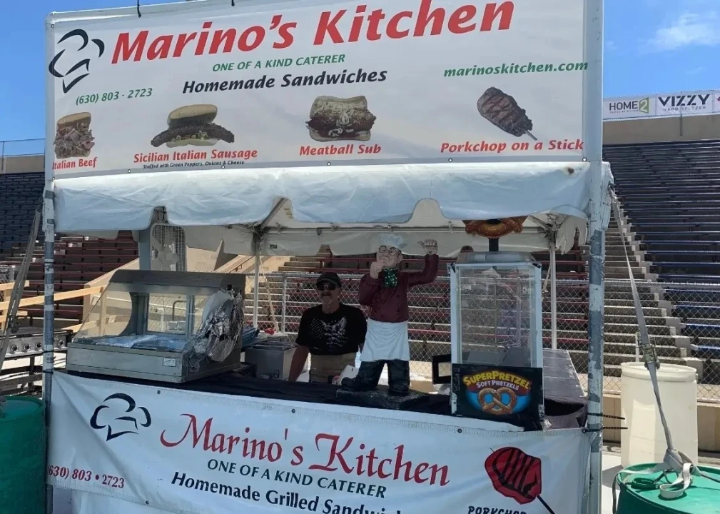 Romeoville resident Don Marino runs the Marino's Kitchen food stand. His banner proclaims he's a "One Of A Kind Caterer." Marino sells pork chop on a stick, Italian beef meatball subs and his favorite, Sicilian Italian Sausage. The inside of the sausage is stuffed with green peppers, onions and cheese. He expects his homemade Sicilian Sausage and his pork chop on a stick to be his most popular food items at Taste of Joliet.